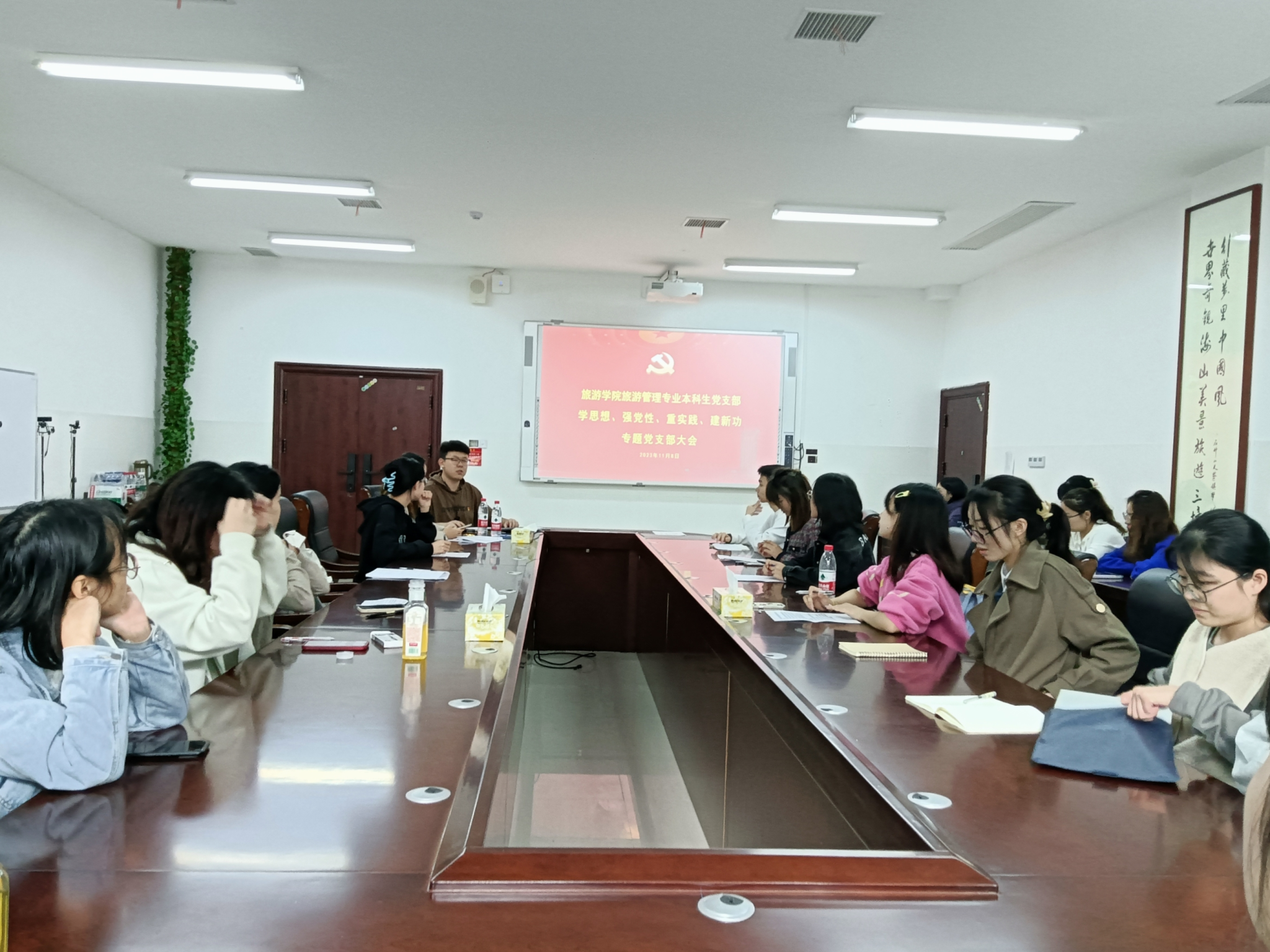 11月8日,旅游管理专业本科生党支部于中和楼233会议室召开党员大会,大会主要是讨论表决预备党员的接收问题。本次党员大会由支部书记李东泽主持,支部“第一书记”赵雅璇到会指导。