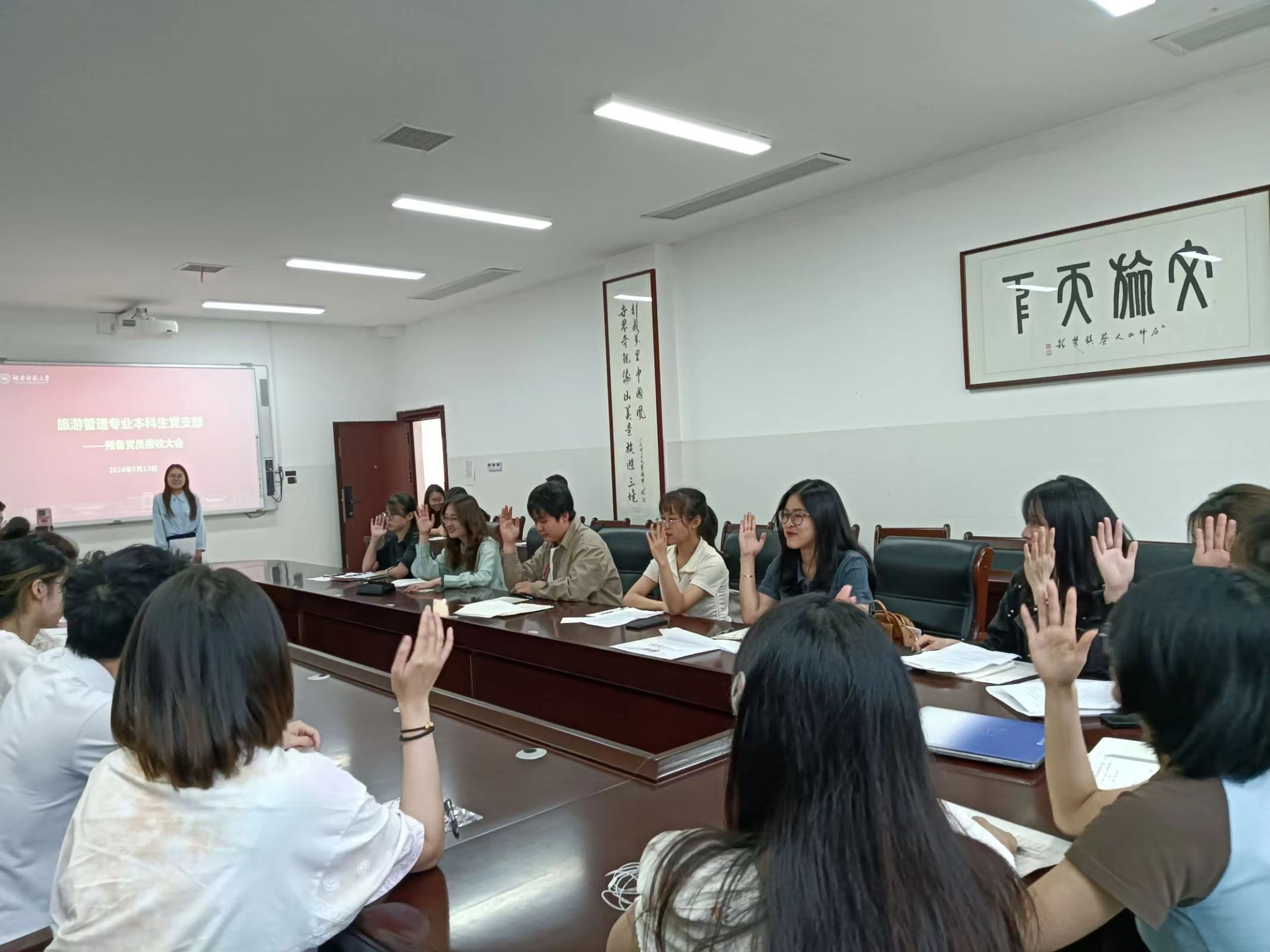 5月13日,旅游管理专业本科生党支部于中和楼233会议室召开党员大会,大会主要是讨论表决预备党员的接收问题。本次党员大会由支部书记李东泽主持,支部“第一书记”赵雅璇到会指导。