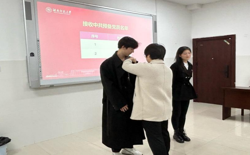会议最后,支部“第一书记”王晶为新接收党员佩戴党徽,并对新接收的预备党员提出了殷切期望,鼓励他们在学习、工作和生活中不断发挥先锋模范作用,争做一名优秀的共产党员。