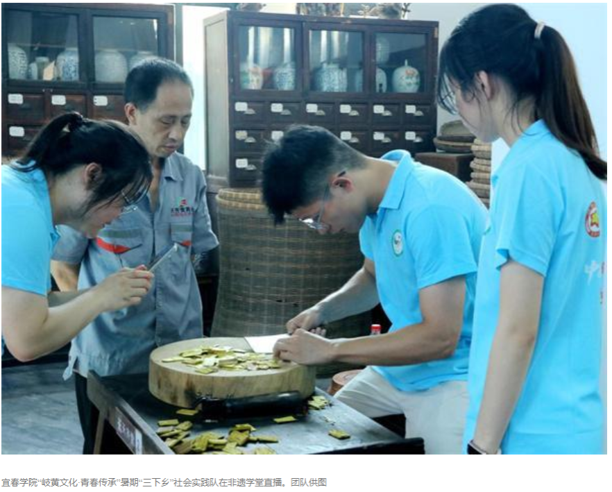 7月的“药都”江西省樟树市,中草药香气在青砖古巷间蔓延。宜春学院的大学生们扛着直播设备穿梭其间,将镜头聚焦在当地非遗项目中药炮制技艺上。药学专业的学生化身讲解员,为观众讲解药理知识。