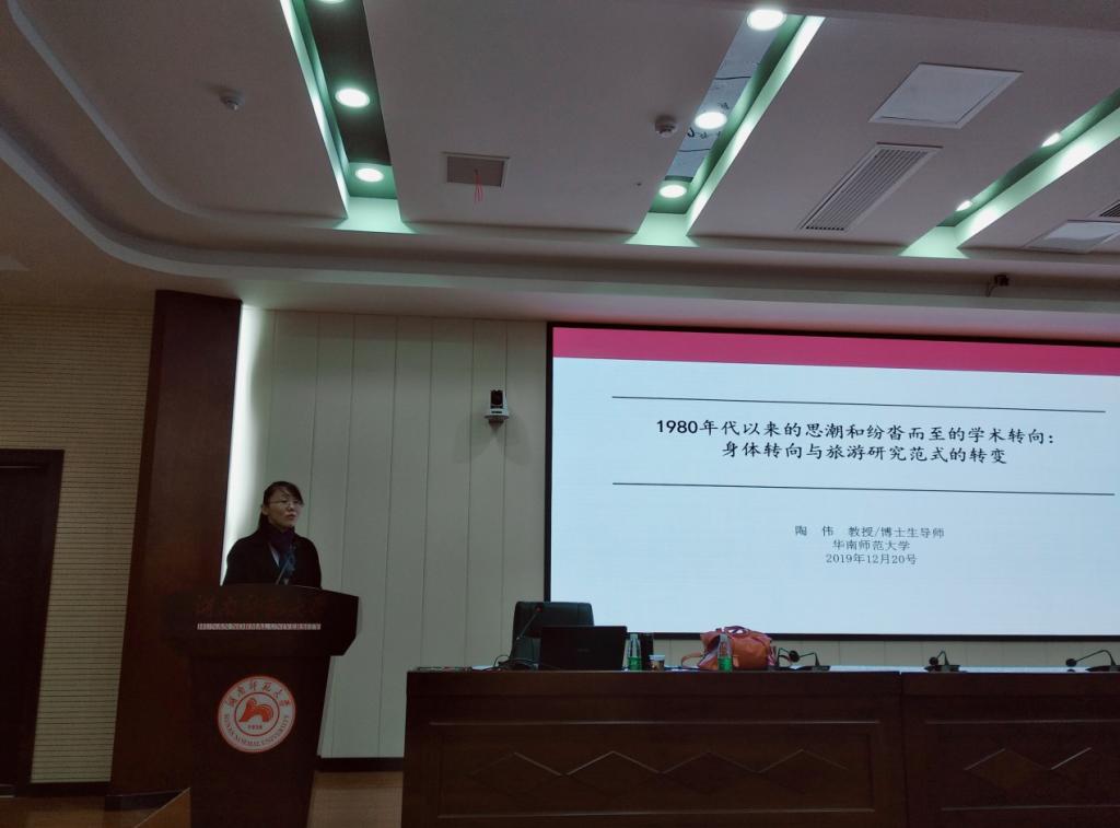 (通讯员 李倩)12月21日上午,华南师范大学地理科学学院陶伟教授应邀来我院讲学。在中和楼234报告厅作题为“1980年代以来的思潮和纷沓而至的学术转向:身体转向与旅游研究范式的转变”的学术讲座。讲座由副院长许春晓主持。