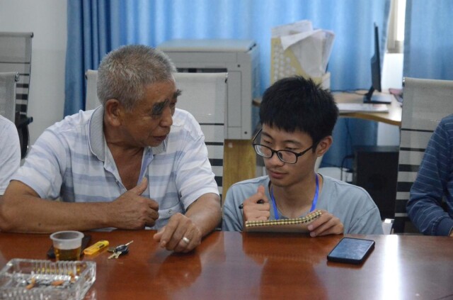 7月2日,团队与六位曾参与修建雄关渠的老人进行座谈会。首先,关溪乡党委书记吴新万发表了简短致辞,对实践团以及修建雄关渠的老人们的到来表示热烈欢迎。随后座谈会正式开始。实践团成员根据7月1日参观雄关渠纪念馆及重走雄关渠的亲身体会,并结合搜集资料,准备了内容翔实的采访问题。在老人分享的修建雄关渠的经历中,总设计师李湘明的故事尤其动人——修建雄关渠时,老人只有小学学历,只能以“土办法”获取勘察数据,在“反复勘测”中保证精确度,靠着在实践中的摸爬滚打,老人一步步探索出测量规划的正确方法。社会调研是一个全新的领域,是团队从理论走向实践的转折点,其间不乏诸多困惑、迷茫,但在李湘明老人身上,证实了“不作空想家,但求实践忙”的正确性,为后续调研工作提供精神动力。