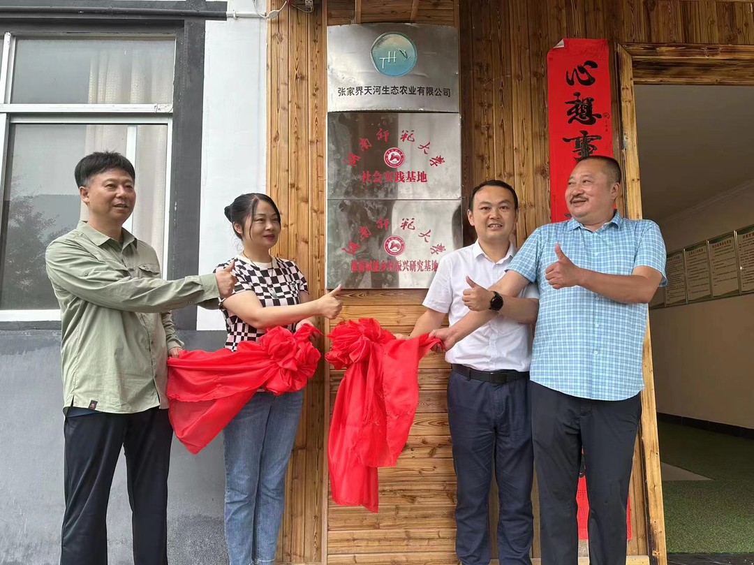 为加强产学研融合,推进校企合作育人实践,7月5日,伟德BV1946社会实践基地、旅游赋能乡村振兴研究基地在桑植县天河农庄揭牌,1946伟德国际源自英国院长王兆峰、副书记廖欢、桑植县副县长胡辉、张家界天河农业有限公司总经理张云峰共同为基地揭牌。