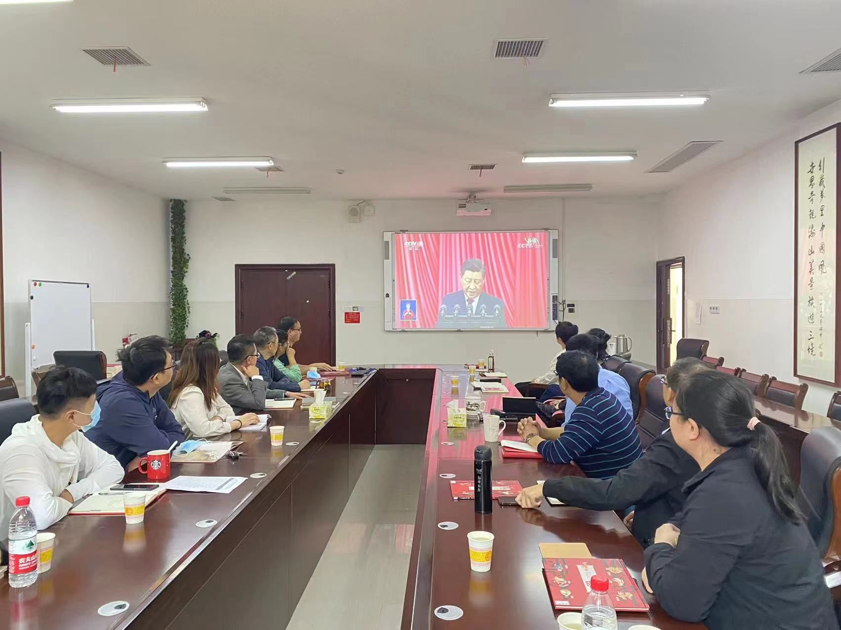 酒店管理系党支部全体党员通过多种形式观看党的二十大开幕盛况,支部书记唐健雄带领部分在校支部党员在中和楼233会议室集中观看,其余支部党员教师分别利用手机、电脑、电视等终端进行了收看。全体支部党员教师认真聆听习近平同志代表第十九届中央委员会向党的二十大作的报告。