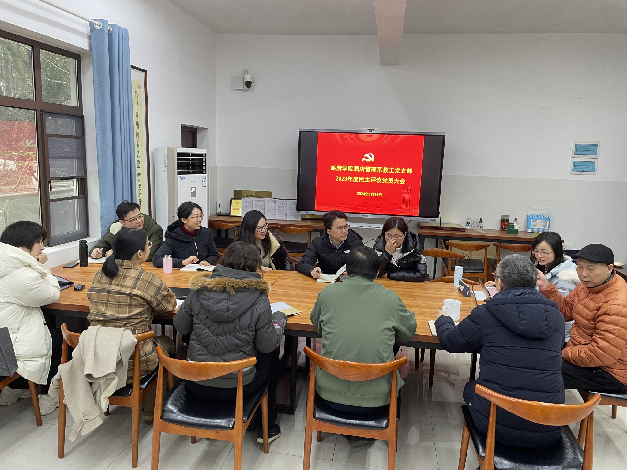 1月16日下午,酒店管理系教工党支部在中和楼215会议室举行支部书记述职暨2023年度民主评议党员会议。学院院长王兆峰到会指导,会议由支部副书记程慧主持,支部全体党员参加了会议。