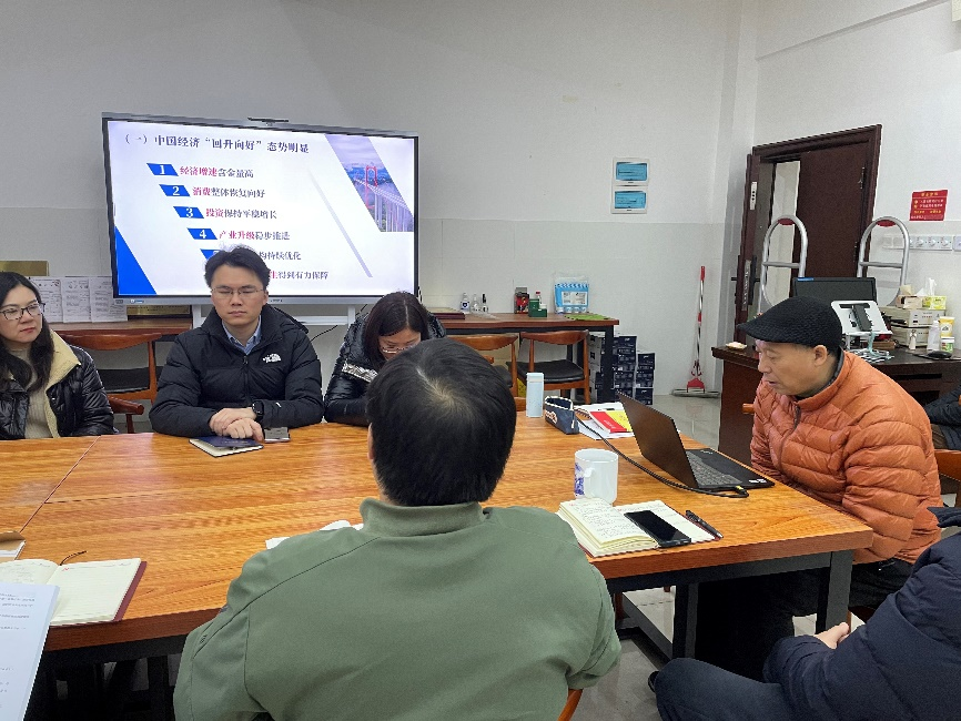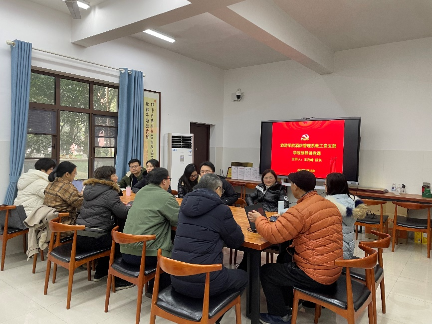 1月16日下午,酒店管理系教工党支部在中和楼225会议室举行了一场学院领导讲党课学习活动。此次活动特邀学院院长王兆峰主讲,本次党课授课主题为《正确看待我国经济发展面临的挑战和优势》。